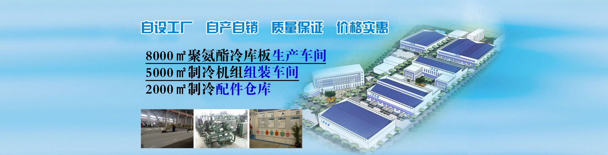 自設(shè)8000平方聚氨酯生產(chǎn)車(chē)間、5000平方制冷機(jī)組組裝車(chē)間真正做到自產(chǎn)自銷(xiāo)、讓利客戶(hù)。